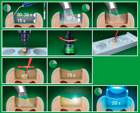 - Адгезивная фиксация прямых композитных, Polyglas и компомерных реставраций