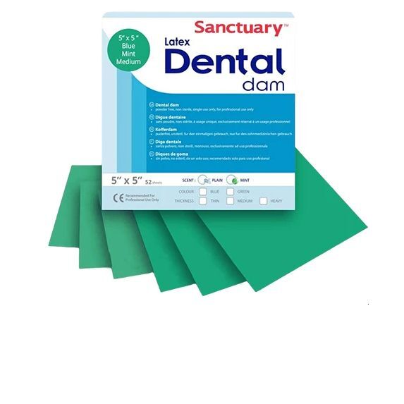 ОПИСАНИЕ: КОФФЕРДАМ LATEX DENTAL DAMS, ЗЕЛЕНОГО ЦВЕТА С АРОМАТОМ МЯТЫ, СРЕДНИЙ, РАЗМЕРЫ 152ММ. Х 152ММ., 36ШТ (УПАК.), SANCTUARY